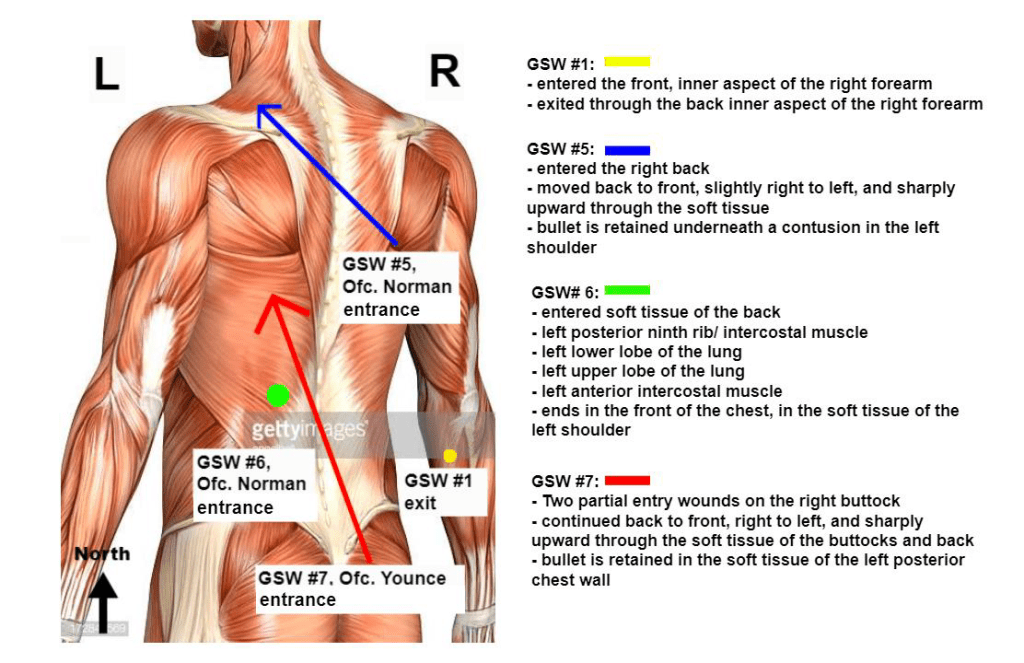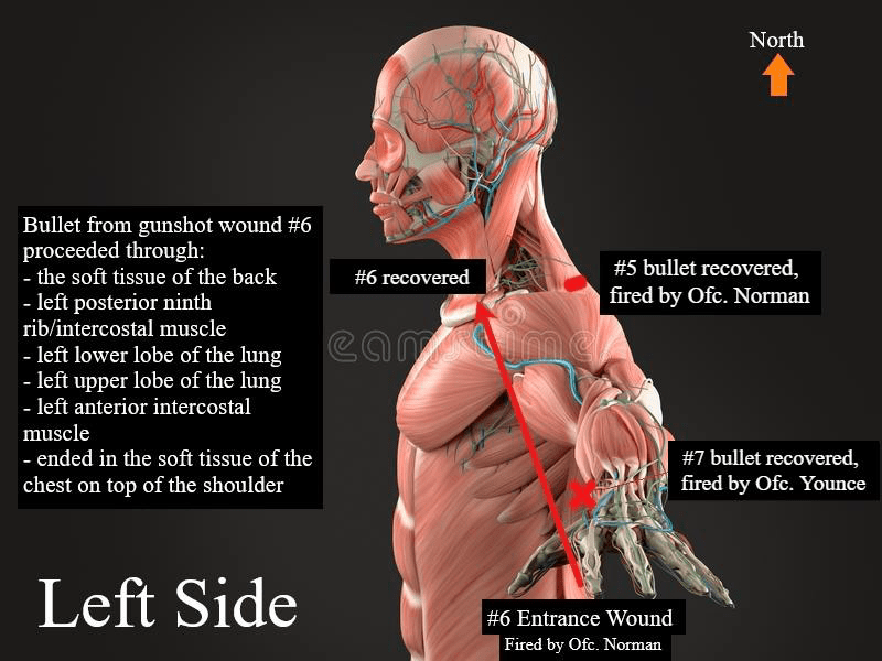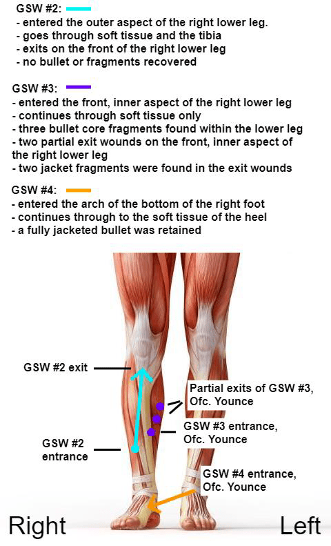 - Investigators never addressed the fact that each shot fired must be individually justified. Interviews and the rest of the investigation breezed past this important legal point.