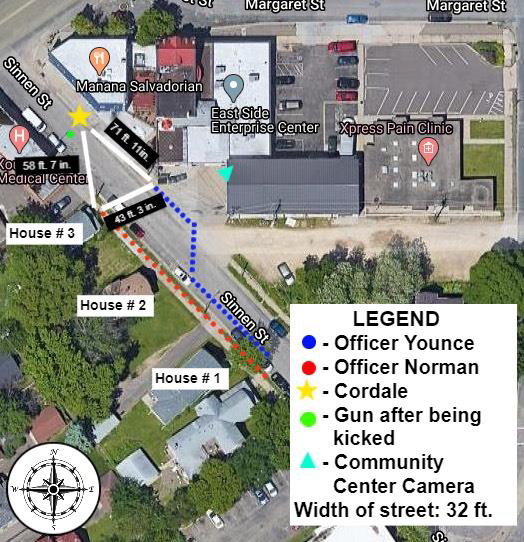 - Choi’s report included the statement “Since he could not yet identify Cordale as being in possession of a firearm, Officer Younce kept his gun at his side.” This is simply untrue. Officer Younce had his gun pointed despite not being able to identify Cordale as being in possession of a firearm.