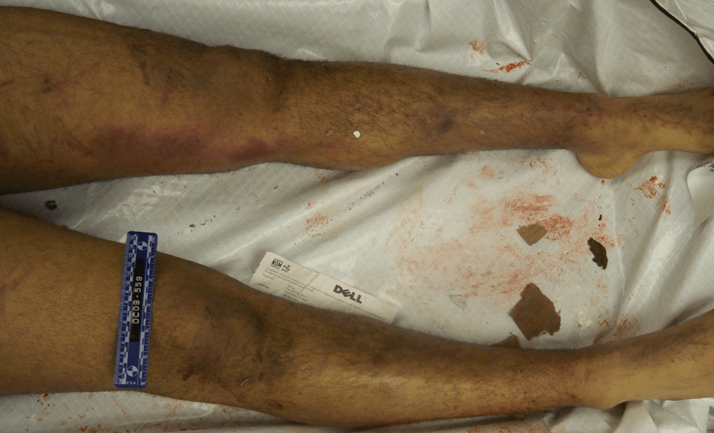 4. Possible dog bites on Justin’s legs?