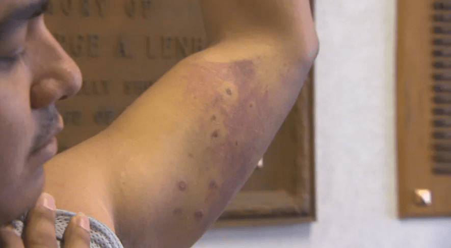 These suspected bite marks can be compared to the bite marks of a man who was bitten by a police dog in Regina, Canada, below.